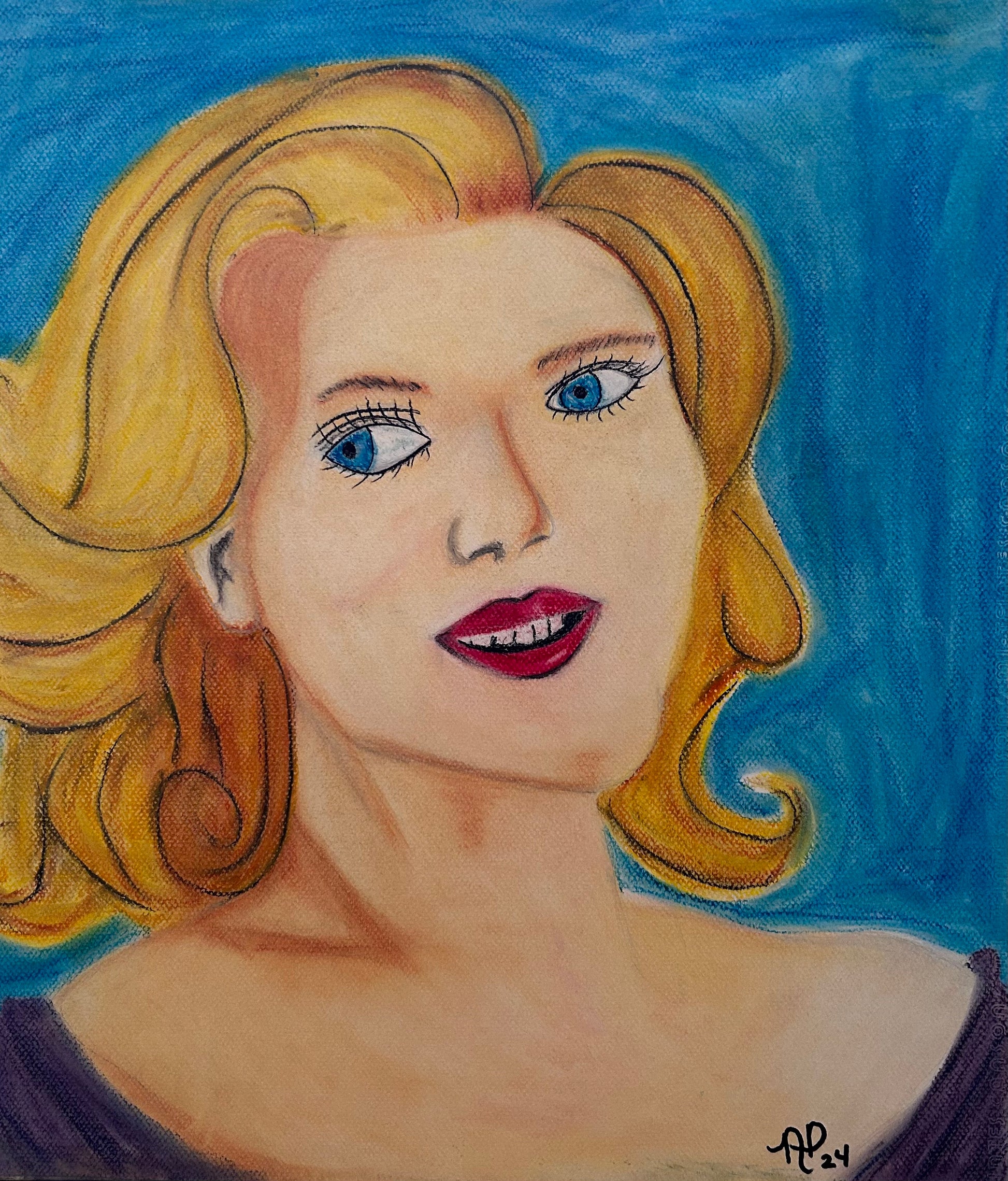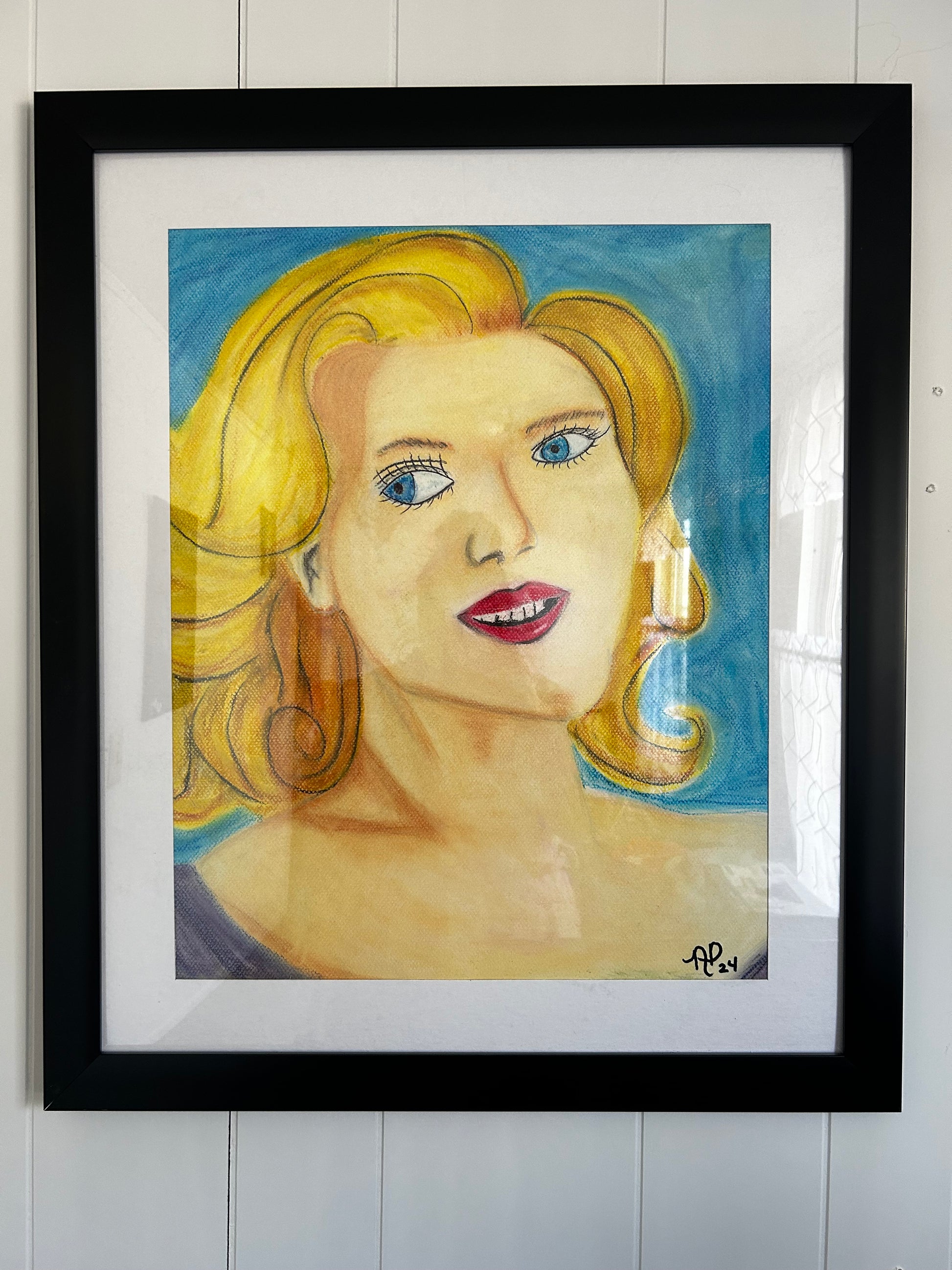 Framed 16”x20” chalk soft pastels on drawing paper. Original artwork.